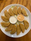 In bread crumbs mixed with parsley, Parmigiano cheese & garlic, fried & topped with sauce & mozzarella cheese.